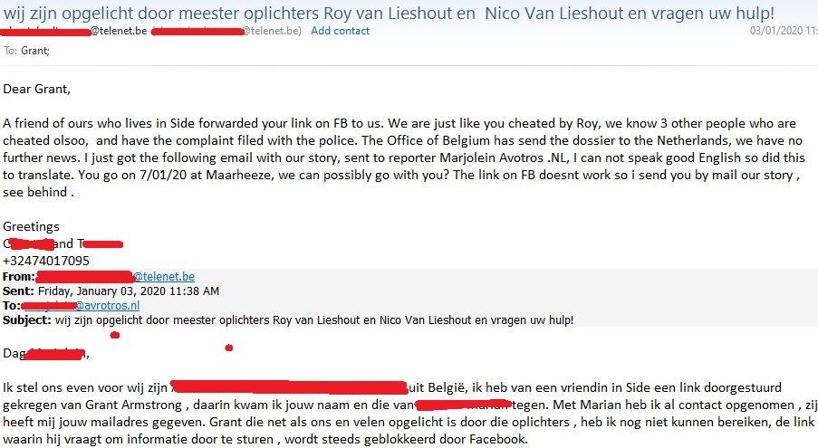 of all the Belgians and Dutch that we already know there is a scam of a 54000 euros, unfortunately not everyone has filed a complaint.